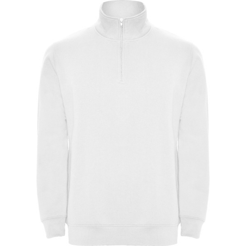Sweat avec demi zip ton sur ton et col montant. Intérieur du cou même tonalité. Bande de propreté renforcée à l’intérieur du col. Poignets et ceinture en côte 1x1.