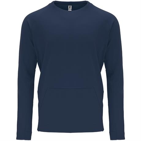 Description Sweat manches longues style raglan. Arrière du col et poignets en côte 1x1. Poche kangourou avec finition sans coutures. Coutures latérales en diagonales allant sur la partie frontal du sweat. |
