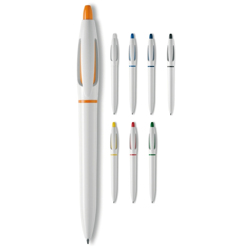 Description Le stylo bille S! de couleur opaque blanche avec poussoir et anneau colorés inclus une recharge d'écriture bleue X20. Sa cartouche X20 écrit jusqu’à 2.5kms, écriture par défaut bleue. Le stylo est fabriqué en Europe en plastique ABS. À partir de 5.000 pièces, vous pouvez choisir vos propres couleurs. |
