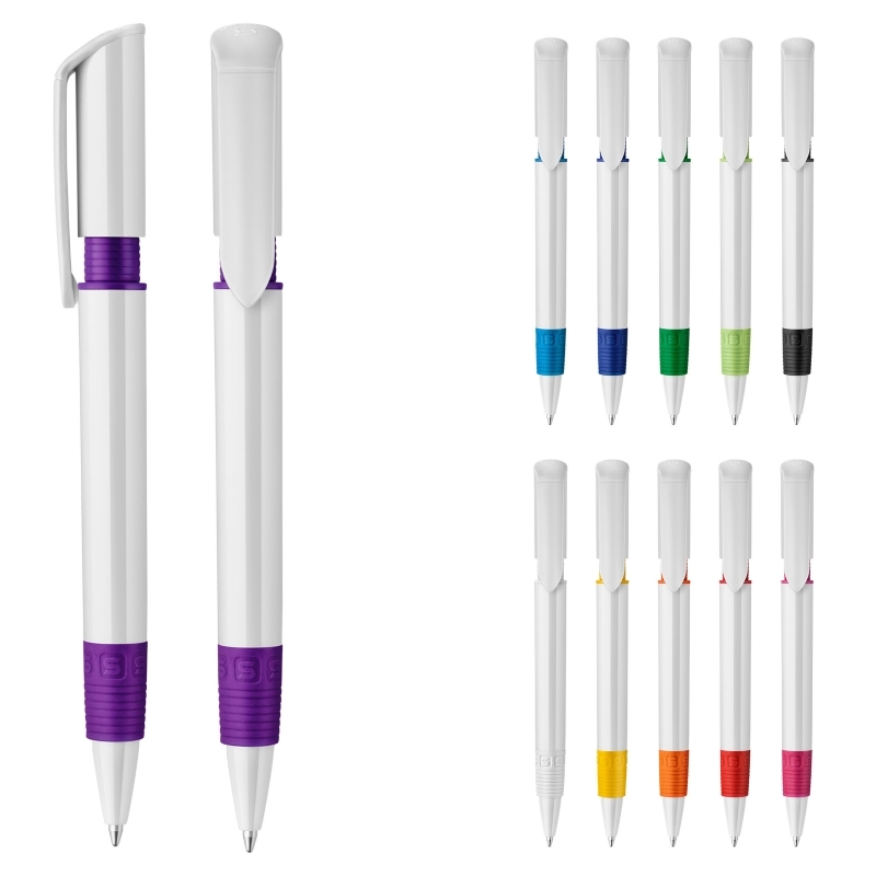 Description Le stylo bille S40 Grip est un stylo très prisé avec son clip de couleur qui peut être imprimé, il donne du style et du caractère au stylo. Le corps blanc peut être personnalisé facilement. Il comprend un mécanisme de poussoir et une recharge X20 avec de l'encre d'écriture bleue. Sa cartouche jumbo écrit jusqu’à 2.5km, écriture par défaut bleue. Le stylo est fabriqué en Europe en plastique ABS. À partir de 5.000 pièces, vous pouvez choisir vos propres couleurs. |