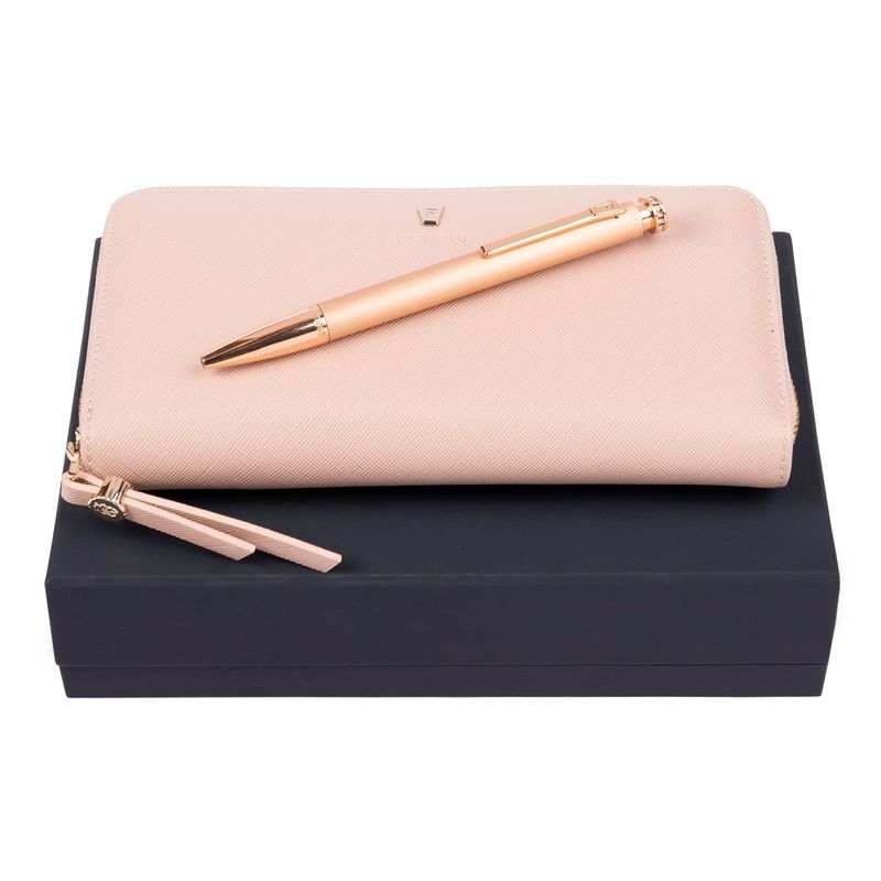<< Revenir au catalogue Liberty Gift Luxe > Écriture > Parure Parure Mademoiselle (stylo bille & portefeuille voyage)