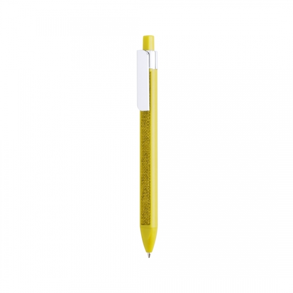 Stylo à bouton-poussoir original de forme quadrangulaire avec une bande douce en tissu assorti sur le corps. Marquage prévu sur le clip rectangulaire. Gamme de couleurs vives et variée. Encre bleue.