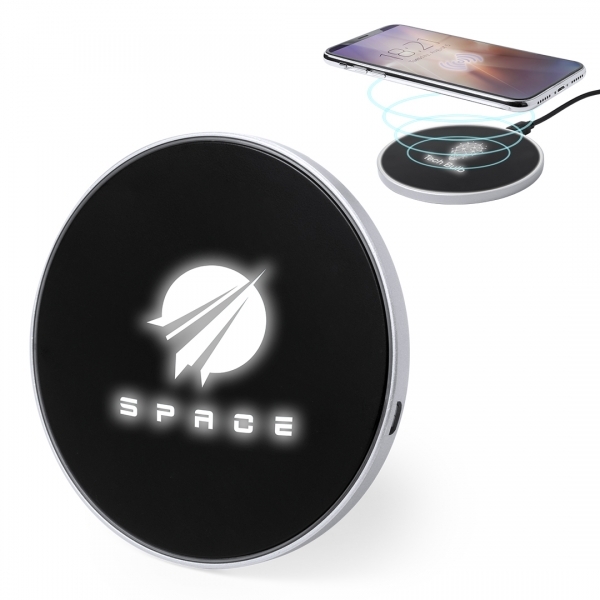 Description Chargeur sans fil circulaire. En noir élégant, avec la lumière intérieur de LED et un revêtement extérieur spécialement conçu pour le marquage de laser, avec lequel vous obtiendrez votre publicité ou marque illuminée avec la lumière blanche. Base antidérapante compatible avec les appareils équipés d une technologie de recharge sans fil. Présenté dans la boîte attrayante de conception. Câble USB inclus. |