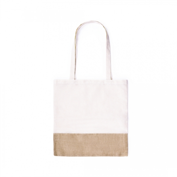 Description Sac écologique dans une combinaison résistante de matières naturelles -jute et coton- de 245g/m2. Design attrayant bicolore et finitions cousues. 70 cm, renforcé, longues poignées et résistance jusqu'à 8 kg de poids. |