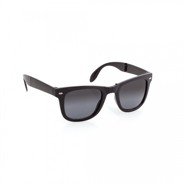 Lunettes de soleil pliables avec protection UV400, forme classique. Avec monture finition brillante dans des coloris gais et verres de couleur noire.