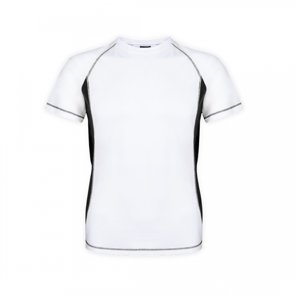 Description T-shirt technique pour adultes en 100% polyester respirant 135g/m2. Blanc avec coutures de renfort et côtés en couleurs vives. Disponible en tailles S, M, L, XL, XXL. |