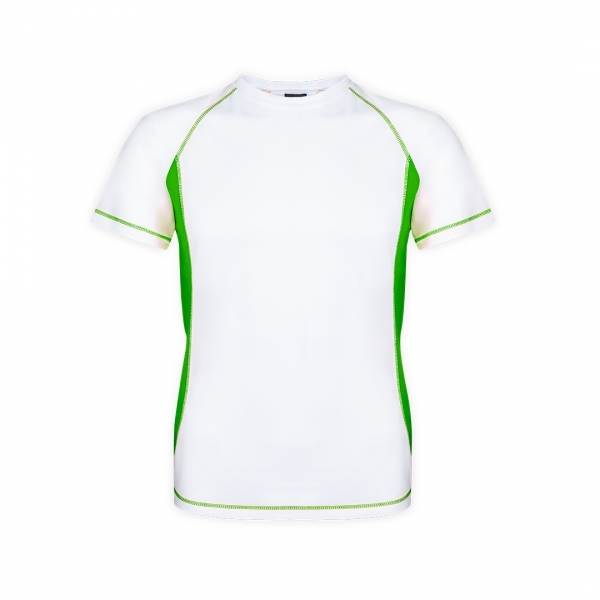 Description T-shirt technique pour adultes en 100% polyester respirant 135g/m2. Blanc avec coutures de renfort et côtés en couleurs vives. Disponible en tailles S, M, L, XL, XXL. |