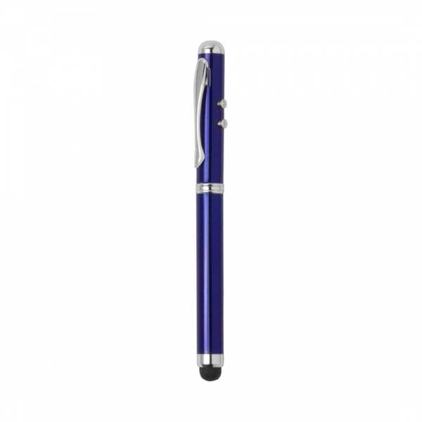 Description Stylo laser métallique dans une finition brillante élégante, avec des boutons d'activation latéraux pour les fonctions laser et lampe de poche (piles bouton incluses). En encre bleue, avec pointeur tactile intégré, fermeture de capot et clip chromé. Spécialement conçu pour le marquage laser. Présenté dans un élégant coffret en métal dans une boîte en carton individuelle avec une finition argentée. Intérieur en éponge douce découpée à l'emporte-pièce, avec piles de rechange. |