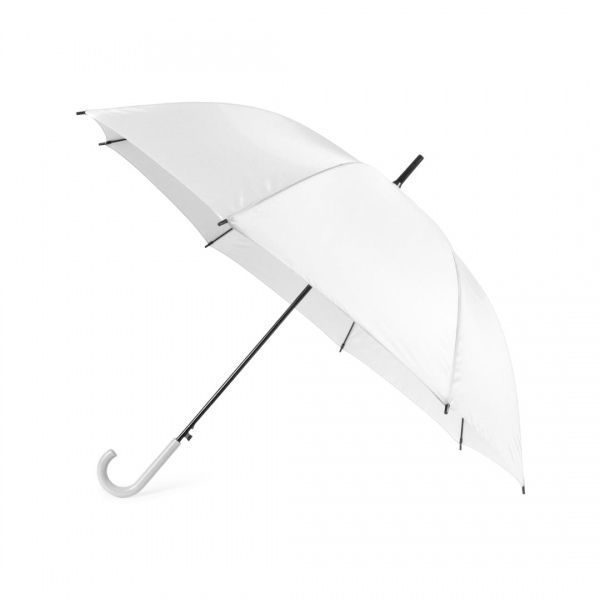 Description Parapluie à 8 panneaux dans une large gamme de couleurs vives et d'un diamètre de 105 cm. Ouverture automatique, en matériau polyester résistant, avec des baguettes métalliques en couleur noires et une poignée assortie. |
