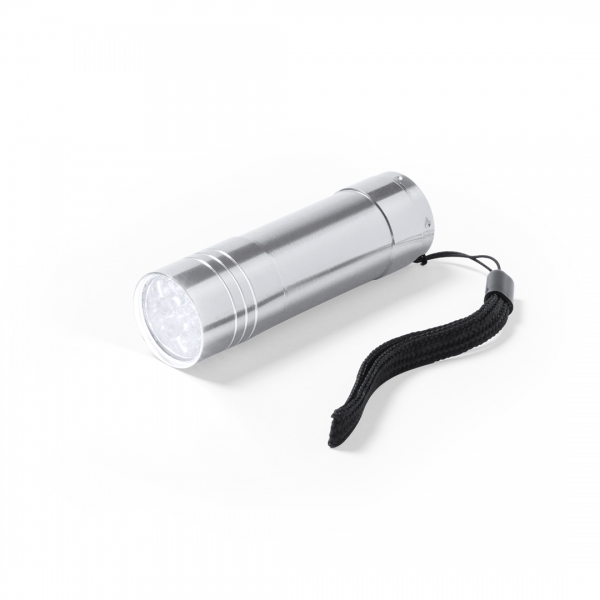 Description Lampe de poche 9 LED à forte puissance d´éclairage. Corps robuste en aluminium, bouton-poussoir protégé par un revêtement caoutchouc résistant et dragonne de transport. Fonctionne avec 3 piles AAA non incluses. Présentée en boîte individuelle. |