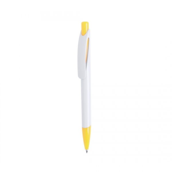 Description Stylo à poussoir bicolore avec accessoires en couleurs vives et pointe assortie, corps blanc. Clip courbé original. Encre bleue. |