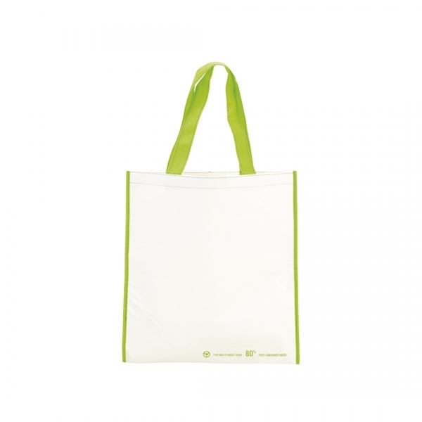 Description Sac en matériau PET recyclé résistant dans une large gamme de couleurs vives et vives. Avec poignées vertes de 60 cm de long et renforcées en nylon. Avec une finition cousue et une résistance jusqu'à 12 kg. |