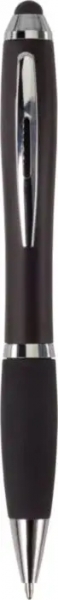 Description Stylo bille en plastique avec embase en gomme et embout pour écran tactile, mine Noire. |