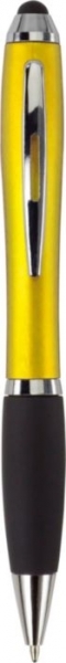 Description Stylo bille en plastique avec embase en gomme et embout pour écran tactile, mine Noire. |