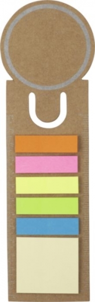 Description Marque-pages cartonné muni de blocs de papiers repositionnables contenant chacun 16 feuillets d'une dimension de 4,5 x 1,2 cm et de 4 x 4,5 cm. |
