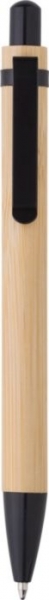 Description Stylo bille en bambou avec attributs en ABS et clip en métal, mine Bleue. |