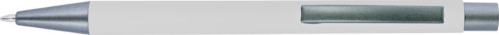 Description Stylo bille en métal au toucher gomme, mine Bleue. Gravé, le rendu ressortira miroir.*Couleur d'impression possible en tampographie : Blanc, Noir, argent et Doré. |