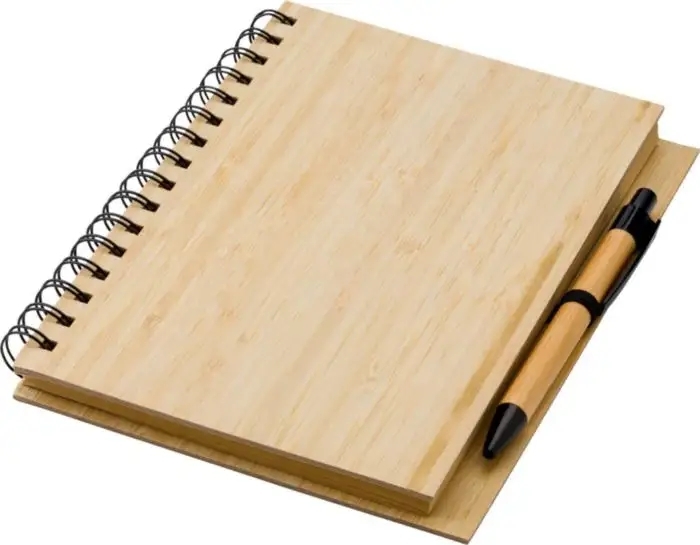 Description Carnet de notes A5 en bambou contenant 80 feuilles lignées et un stylo à bille en bambou avec pointe ABS, mine Bleue. |