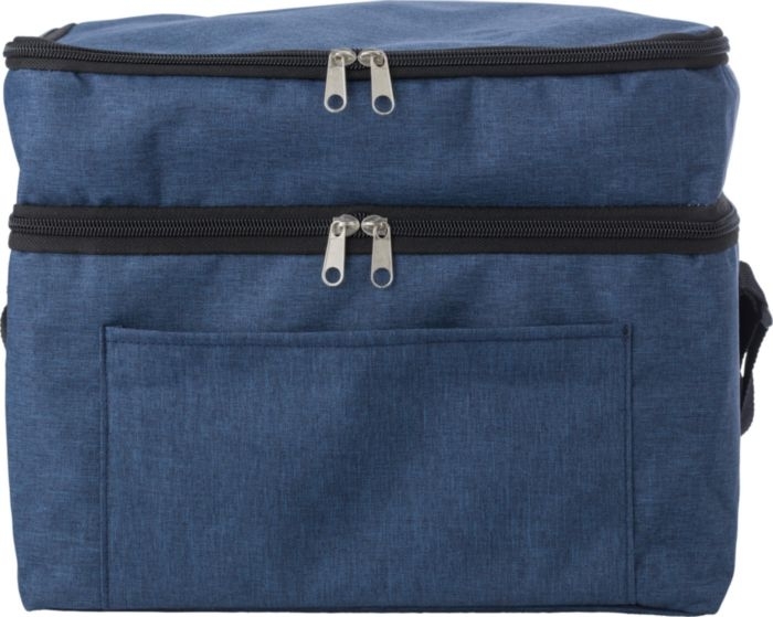 Description Sac isotherme en polyester rPET avec poche frontale et double compartiments zippés. |