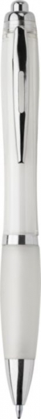 Description Stylo bille en ABS recyclé avec embase en gomme et clip en métal, mine Bleue. |