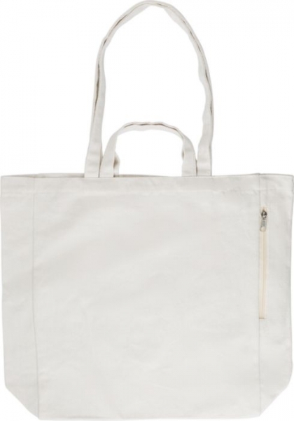 Description Sac shopping 350 g/m² en coton recyclé avec anses courtes et longues, poche frontale zippée. |