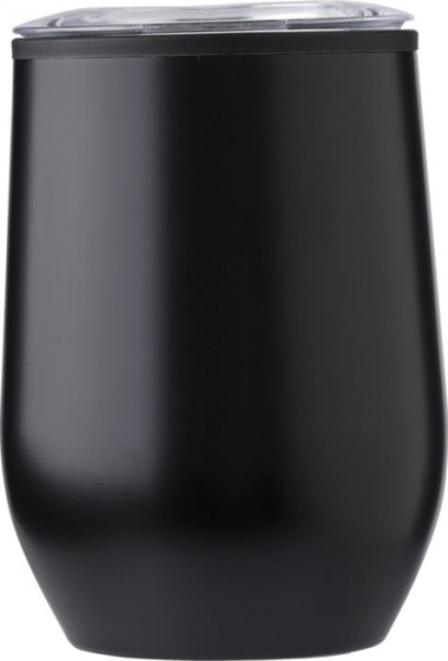 Description Mug double paroi en acier inoxydable mat d'une contenance de 30 cl avec couvercle en plastique PS dans une boîte cadeau en kraft. |