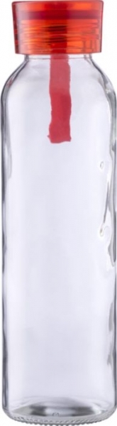 Description Gourde en verre avec bouchon en PS avec dragonne d'une capacité de 50 cl dans une boîte en kraft. |