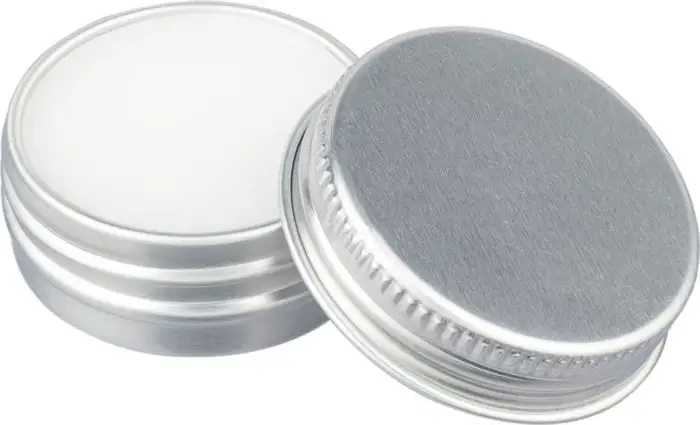 Description Baume à lèves vegan SPF 10 contenant 12 g dans une boîte en métal livrée dans une pochette cadeau en kraft. |