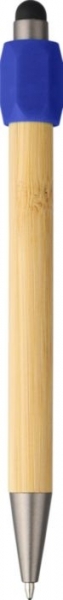 Description Stylo bille en bambou avec fonction spinner en ABS recyclé et embout pour écran tactile, mine Bleue d'une longueur de 800 mètres. |