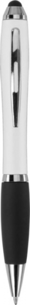 Description Stylo bille en plastique avec embase en gomme et embout pour écran tactile, mine Noire. |