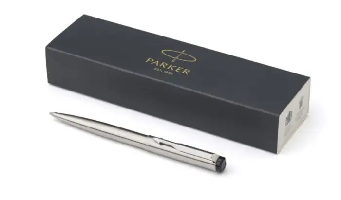 Description Stylo bille 'Vector' en acier inoxydable, mine Bleue. |