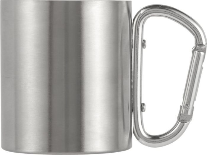 Description Mug double paroi en acier inoxydable d'une contenance de 20 cl avec mousqueton.. |