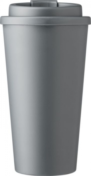 Description Mug double paroi en plastique PP d'une capacité de 45 cl avec couvercle. |