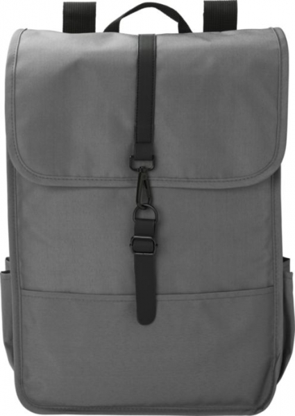 Description Sac à dos avec rabat en polyester rPET 300D avec fermeture par boucle et porte-gourde de chaque côté. |