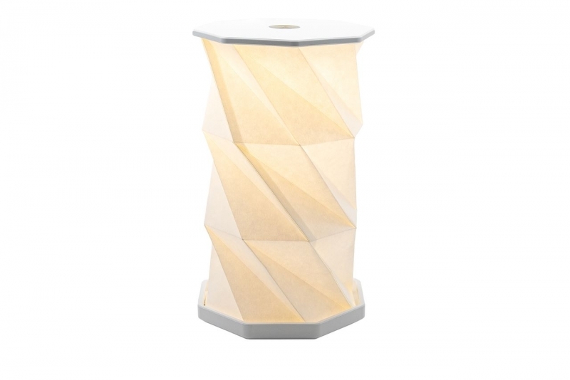 Description Boîtier en ABS et corps intérieur en papier formant un motif géométrique rappelant l'origami. Système d'allumage et d'arrêt automatique en ouvrant et en fermant la lampe mais également manuel grâce à un bouton situé sur la lampe. Intensité lumineuse réglable grâce à un variateur intégré. 3 éclairages différents. Hauteur maximum de la lampe dépliée : 19cm. Puissance de la LED: 2,5W (80 lumens). Fonctionne avec une batterie rechargeable de 400mAh. Autonomie : 2-4h. Livrée avec un câble d'alimentation USB-C. Nouvelle version de notre modèle 'Polaris' PLR000479. |