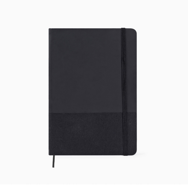 Description Carnet A5 à couverture rigide, en PU et RPET. Contient 80 feuilles lignées de papier crème, grammage 70 g/m². |