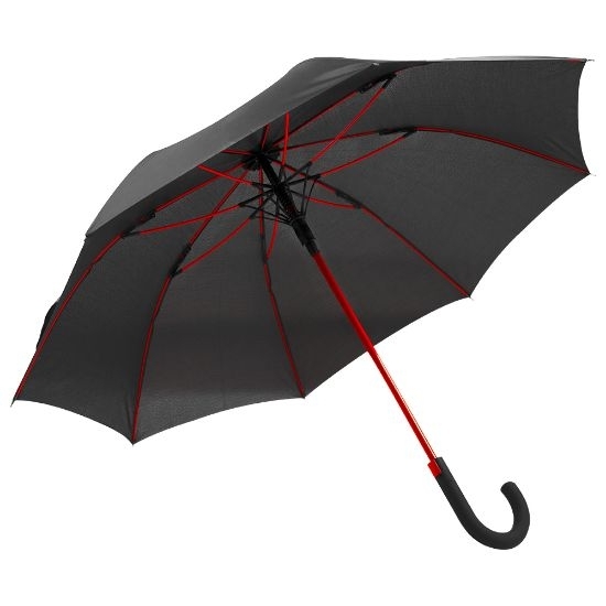 Description Parapluie coupe-vent diamètre 105 cm à ouverture automatique fabriqué en pongé 190T et structure en fibre de verre. |