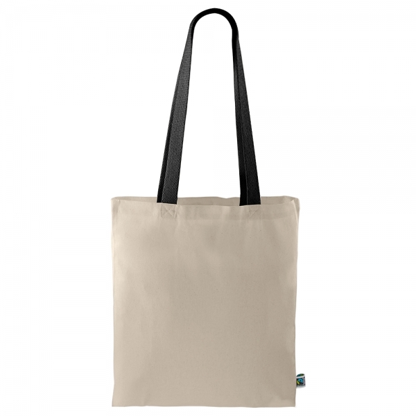 Description Sac à anses longues en coton Fairtrade 140 gr/m² et anses colorées. |