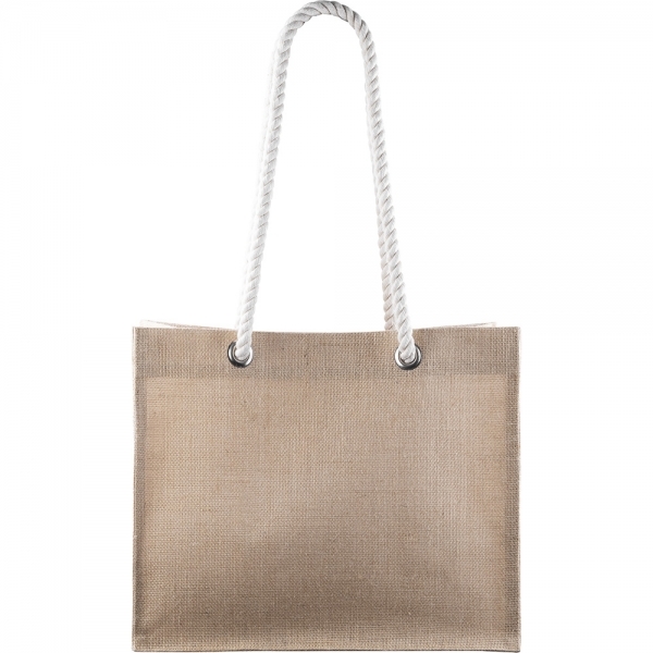 Description Sac en jute de 325gr/m2 avec de longues anses en corde et laminé à l'intérieur. |