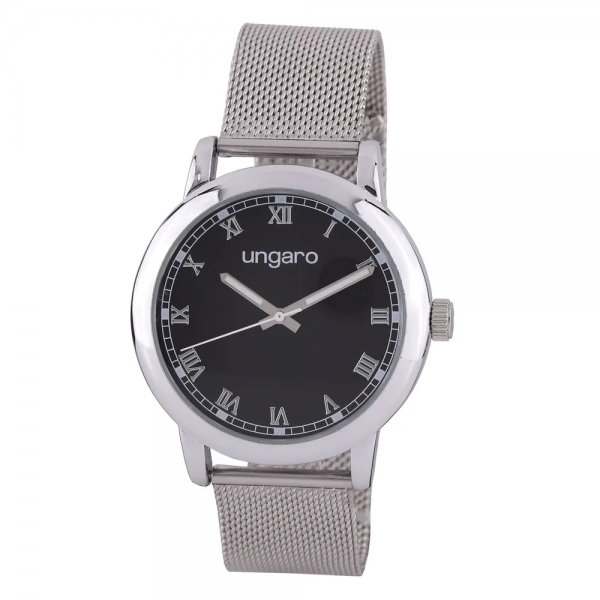 Description La montre "Primo" est tout à fait dans la tendance, bien que le design de son boîtier ait un aspect légèrement rétro. Son bracelet en maille métallique aux finitions chromées contraste avec le cadran noir pour une allure distinctive. Cette montre dateur est étanche jusqu'à 30 mètres et possède un mouvement d'une grande précision. |