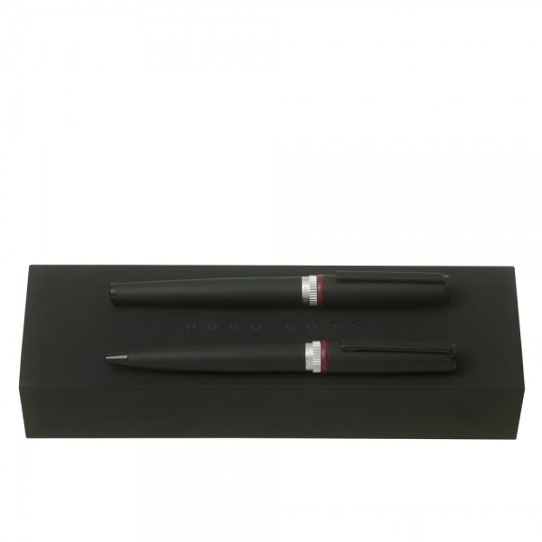Description Parure Gear Black composée d’un stylo bille et d’un stylo roller, au design élégant sublimé par une finition noire contemporaine et des détails soignés. Le stylo bille offre une écriture fluide et précise pour un usage quotidien, tandis que le stylo roller assure un tracé plus intense et confortable. Présentée dans un coffret raffiné, cette parure constitue un cadeau d’affaires premium, idéal pour valoriser votre image avec modernité et distinction. |